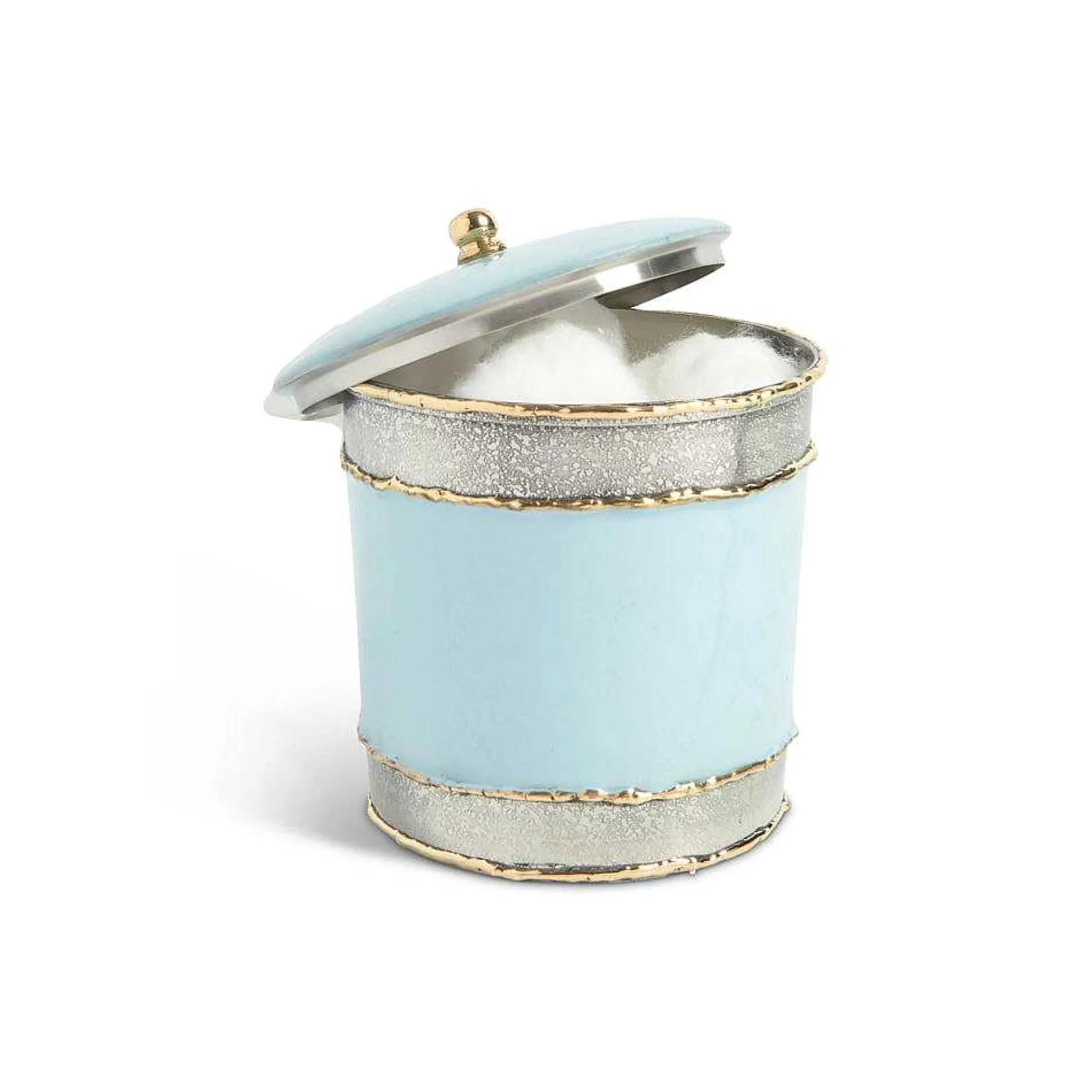 Make Function Fabulous! The Cascade 5.5″ Covered Canister Is The Perfect Addition To Any Powder Room, Vanity Or Desk. With Hand Beaded Stainless Steel, And Hand Layered Mother Of Pearl Infused Enamel, This Piece Is Also Available In A Stunning Array Of Fresh, Updated Colors. Perfect For Q-Tips In The Powder Room, Cotton Balls On Your Vanity Or As A Catch-All On Your Desk, This Use Of The Covered Canister Is Only Limited By Your Imagination. Who Says Practicality Can’T Be Stylish? Create A Cohesive Style From Party To Powder Room, From Tabletop To Toilette And Complete Your Bath Ensemble. Pair This Piece With The Cascade 7″ Soap Dish, The Cascade 9.75″ Waste Basket And The Cascade 5″ Tissue Box For A Complementary Viewpoint Throughout Your Entire Home.