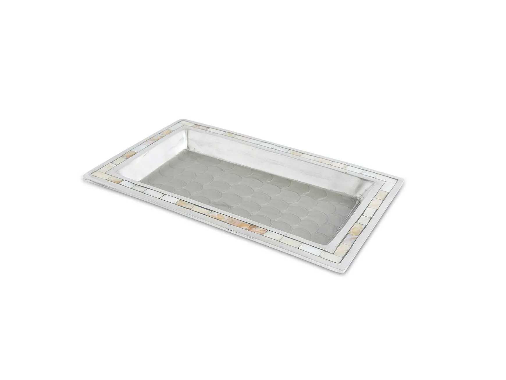Powders, Perfumes And Pearlseoh, My! The Classic 12″ Vanity Tray Is The Perfect Base For Everything Pretty In Your Bathroom, Bedroom Or Dressing Room. With The Hand Cut Mother Of Pearl Mosaic And Crushed Mother Of Pearl Infused Enamel With The Signature Thumbprint Swirl, Each Piece Is Truly One-Of-A-Kind. Ideal For Perfumes And Products In The Bath, A Letter Tray Or Catch-All In The Office And Even Your Favorite Pastries For Guests At Your Next Party! Create A Cohesive Style From Party To Powder Room, From Tabletop To Toilette And Complete Your Bath Ensemble. Pair This Piece With The Classic 7″ Soap Dish, The Classic 9.75″ Waste Basket And The Classic 4.5″ Tumbler For A Complementary Viewpoint Throughout Your Entire Home.