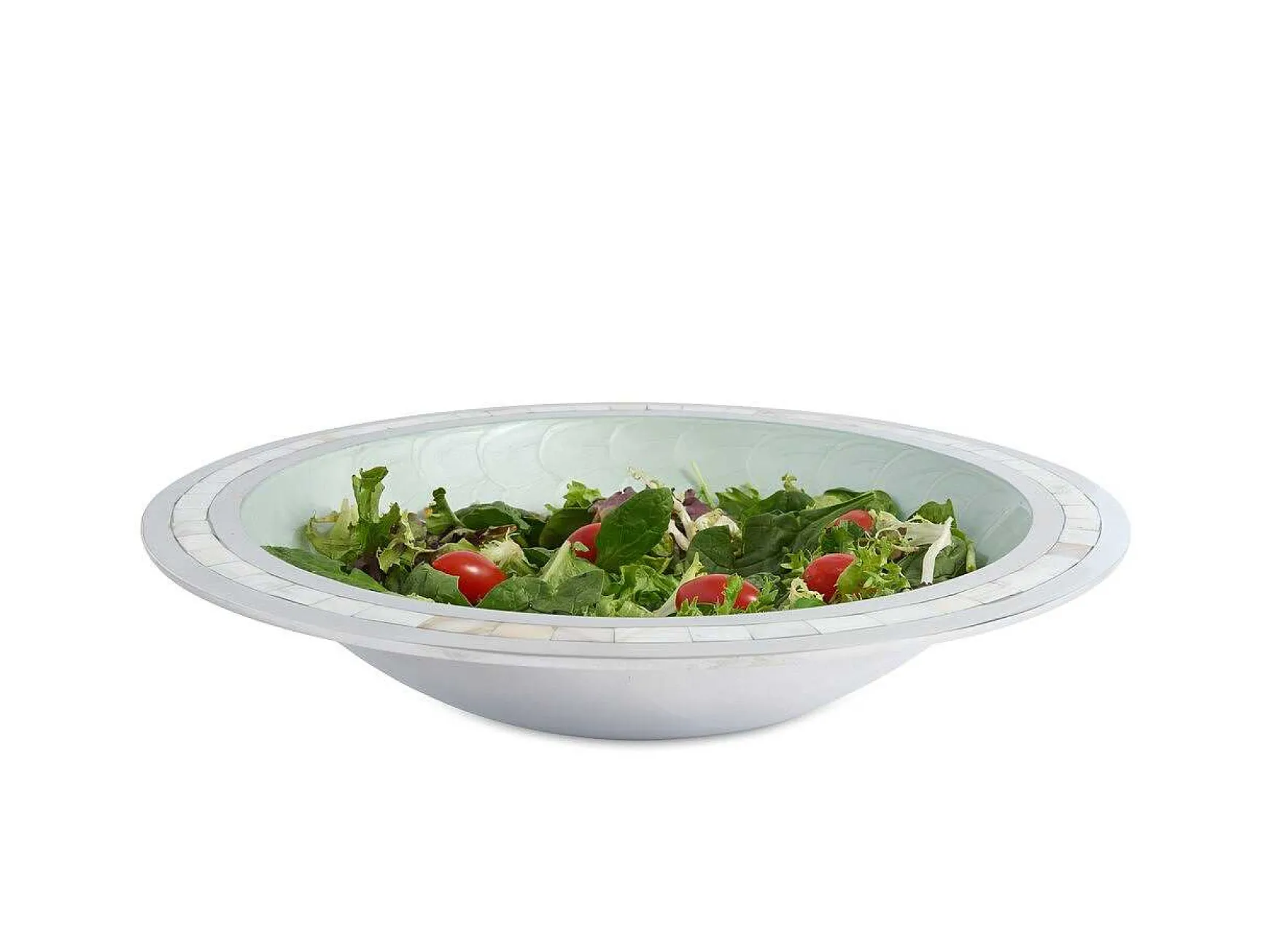 Whether Hosting Guests Or Hosting Your Family Dinner, Classic 15″ Round Bowl Is The Epitome Of The Perfect Bowl! With The Hand Inlaid Mother Of Pearl Mosaic Edging With The Hand Applied Shimmering Crushed Mother Of Pearl Infused Enamel With The Signature Thumbprint Swirl, This Bowl Is Bound To Become Your Favorite Everyday Piece. From Spaghetti And Meatballs With Family, To The A Bright And Beautiful Spring Salad, This Bowl Will Make Any Food Shine. For A Cohesive Look, Don’T Forget The Classic Salad Serving Set! Function And Finesse Never Looked So Good! The Classic Collection Is Food Safe And Can Go Into The Freezer And The Oven Up To 250 Degrees.
