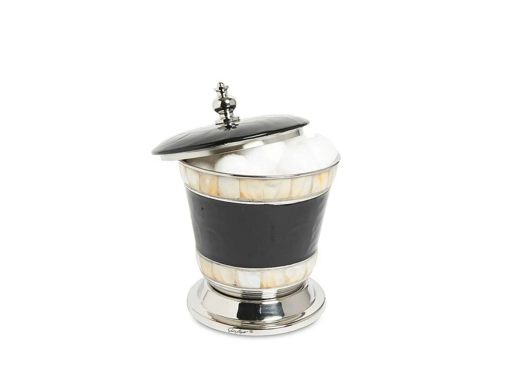 Make Function Fabulous! The Classic 5.5″ Covered Canister Is The Perfect Addition To Any Powder Room, Vanity Or Desk. With The Hand Cut Mother Of Pearl Mosaic And Crushed Mother Of Pearl Infused Enamel With The Signature Thumbprint Swirl, Each Piece Is Truly One-Of-A-Kind. Perfect For Q-Tips In The Powder Room, Cotton Balls On Your Vanity Or As A Catch-All On Your Desk, This Use Of The Covered Canister Is Only Limited By Your Imagination. Who Says Practicality Can’T Be Pretty? Create A Cohesive Style From Party To Powder Room, From Tabletop To Toilette And Complete Your Bath Ensemble. Pair This Piece With The Classic 7″ Soap Dish, The Classic 9.75″ Waste Basket And The Classic 5″ Tissue Box For A Complementary Viewpoint Throughout Your Entire Home.