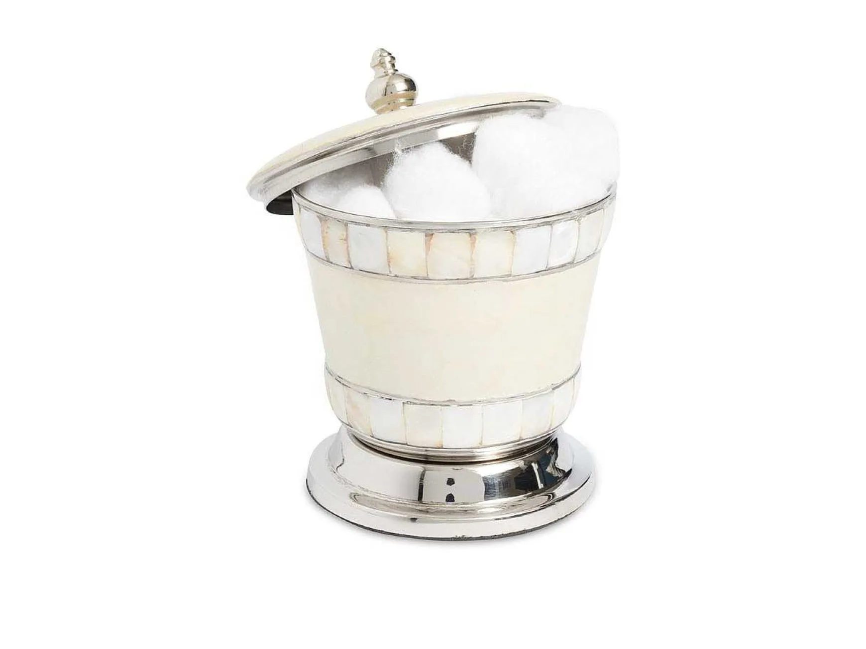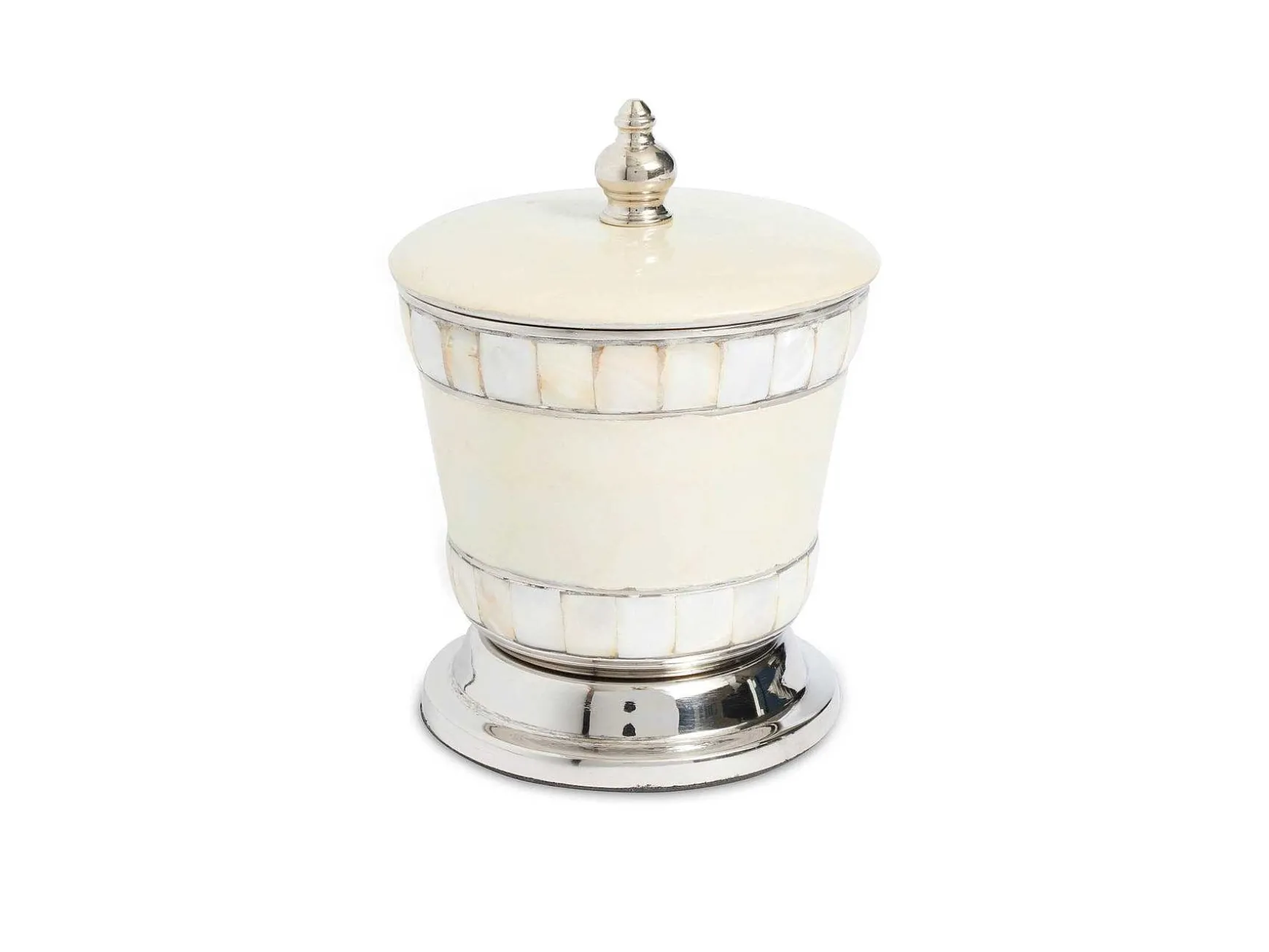 Make Function Fabulous! The Classic 5.5″ Covered Canister Is The Perfect Addition To Any Powder Room, Vanity Or Desk. With The Hand Cut Mother Of Pearl Mosaic And Crushed Mother Of Pearl Infused Enamel With The Signature Thumbprint Swirl, Each Piece Is Truly One-Of-A-Kind. Perfect For Q-Tips In The Powder Room, Cotton Balls On Your Vanity Or As A Catch-All On Your Desk, This Use Of The Covered Canister Is Only Limited By Your Imagination. Who Says Practicality Can’T Be Pretty? Create A Cohesive Style From Party To Powder Room, From Tabletop To Toilette And Complete Your Bath Ensemble. Pair This Piece With The Classic 7″ Soap Dish, The Classic 9.75″ Waste Basket And The Classic 5″ Tissue Box For A Complementary Viewpoint Throughout Your Entire Home.