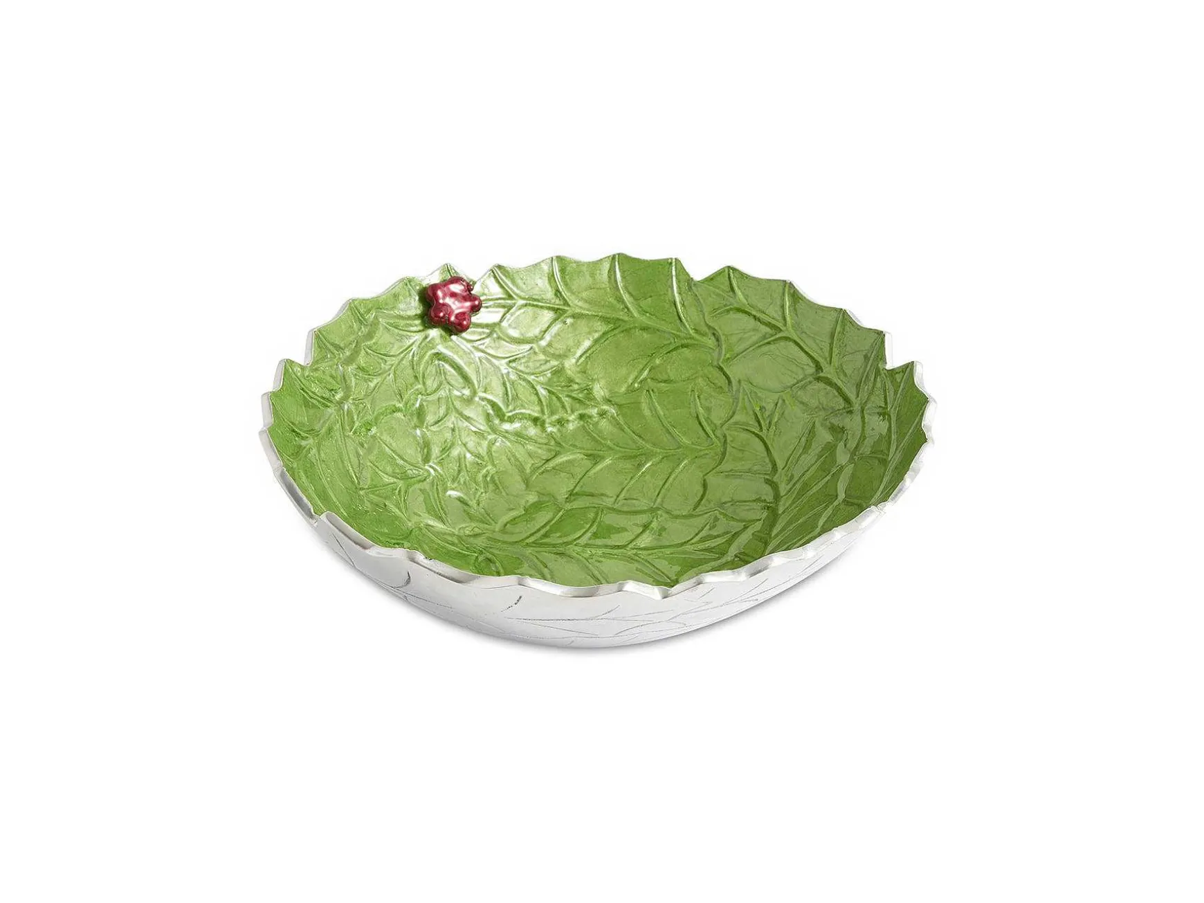 Rooted In The Wonder Of The Holiday Season, The Classic Styling Of The Holly Sprig 12″ Bowl Will Surely Become A Family Heirloom. From The Luxurious Richness Of The Crushed Mother Of Pearl Infused Enamel To The Signature Thumbprint Swirl, Each Piece Is Truly One-Of-A-Kind. This Charming Bowl Is Ideal For Your Favorite Sides, Salads Or Desserts. Pair It With The Holly Sprig Spreader For The Perfect Hostess Gift! Add Brightly Colored Ornaments And Fresh Pine And This Bowl Is A Show-Stopping Centerpiece For The Season. Mix And Match This Piece With Other Stunning Items From The Holiday Collection Or The Florentine Collection, And Create A Memorable Tablescape That Will Be Seeped In Tradition. The Holiday Collection Is Food Safe And Can Go Into The Freezer And The Oven Up To 250 Degrees.