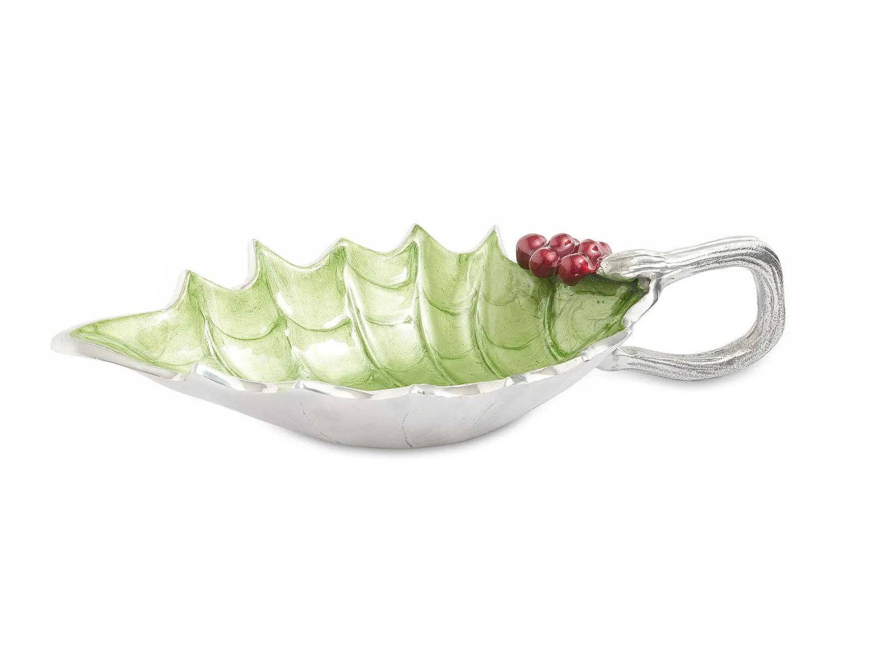 Rooted In The Wonder Of The Holiday Season, The Classic Styling Of The Holly Sprig Sauce Boat Will Surely Become A Family Heirloom. From The Luxurious Richness Of The Crushed Mother Of Pearl Infused Enamel To The Signature Thumbprint Swirl, Each Piece Is Truly One-Of-A-Kind. This Charming Bowl Is Ideal For Your Favorite Sauces, Dips And Nuts. Pair It With The Holly Sprig Spreader For The Perfect Hostess Gift! Mix And Match This Piece With Other Stunning Items From The Holiday Collection Or The Florentine Collection, And Create A Memorable Tablescape That Will Be Seeped In Tradition. The Holiday Collection Is Food Safe And Can Go Into The Freezer And The Oven Up To 250 Degrees.