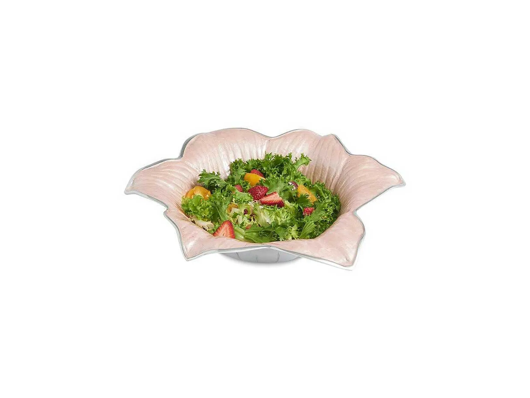 Cheerfully Charming, The Lovely Lily 15″ Bowl Will Add Enchanting Detail To Every Table. Perfect For Pastas, Salads Or Your Favorite Dessert, This Piece Is Sure To Bring You And Your Guests Whimsical Joy. Crafted With The Crushed Mother Of Pearl Infused Enamel And The Signature Thumbprint Swirl, Each Piece Truly One-Of-A-Kind. Create A Bright And Blossoming Table When You Mix And Match Vibrant Color Options From The Rest Of The Flower Collection Or Pull From Peony And By The Sea Collections For An Unforgettable Enchanting Mix. The Flower Collection Is Sand-Cast Aluminum, Food Safe And Able To Go Into The Oven Up To 250 Degrees.
