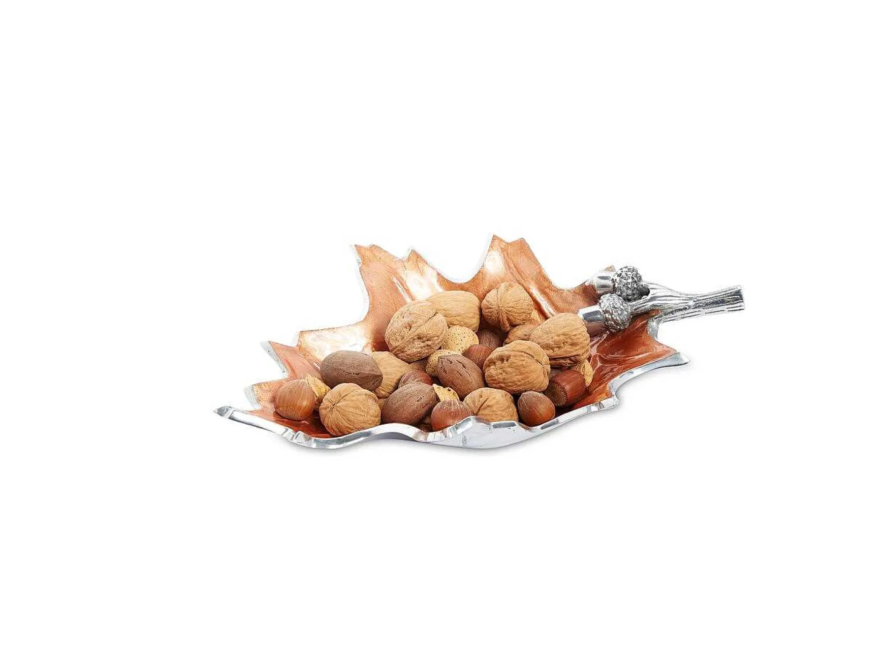 Applaud The Abundance Of Autumn With The Stunning Oak Leaf 13″ Bowl. From The Richness Of The Crushed Mother Of Pearl Infused Enamel To The Signature Thumbprint Swirl, Each Piece Is Truly One-Of-A-Kind And Will Surely Become A Family Heirloom. This Bowl Is Ideal For Your Favorite Sides, Salads Or Cheese And Crackers. Mix And Match The Luxe Lodge Collection With The Florentine Collection Or The Peony Collection For A Sophisticated Style That Will Stand Out At Your Next Soiree. The Luxe Lodge Collection Is Food Safe And Can Go Into The Freezer And The Oven Up To 250 Degrees.