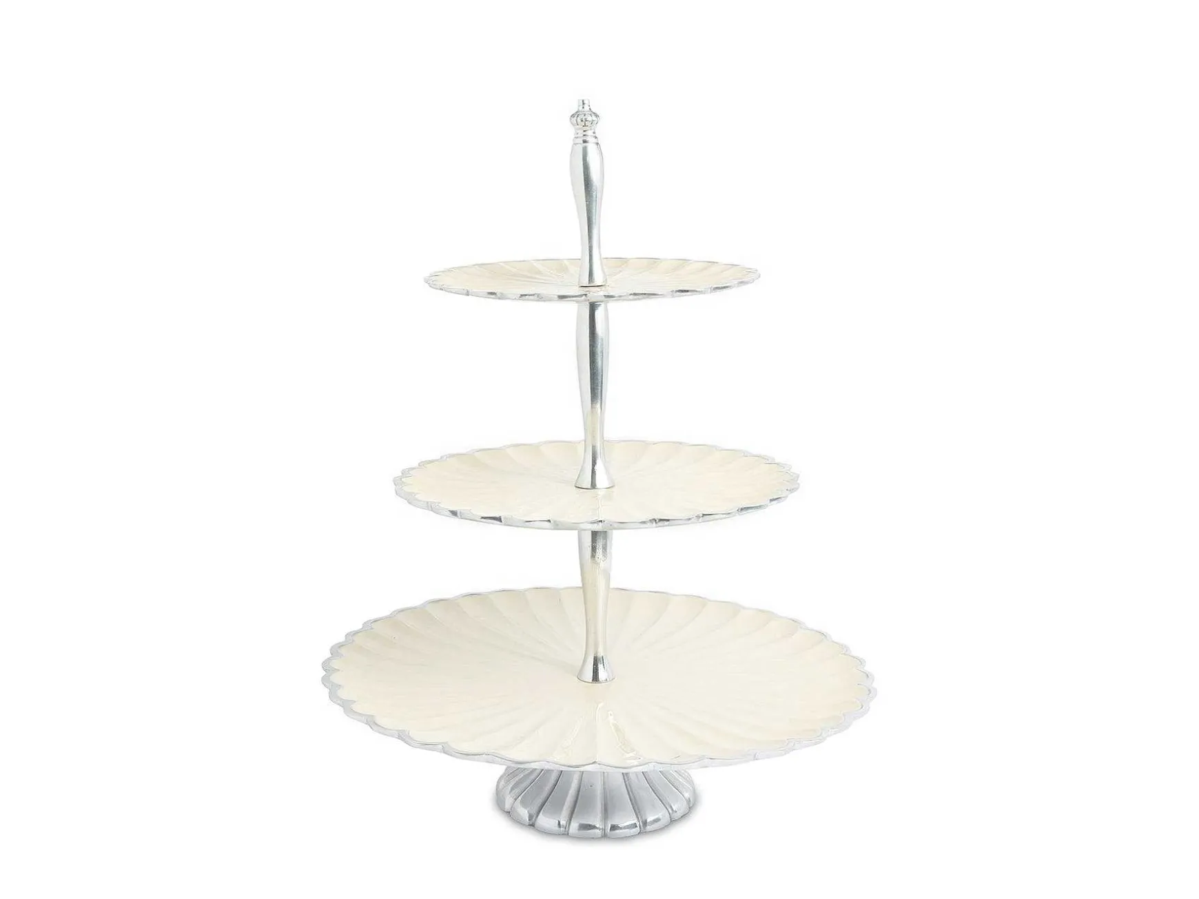Dynamic And Dramatic Is The Perfect Way To Describe The Peony 16″ Three-Tiered Server. The Luxurious Color Palettes Embodied In The Crushed Mother Of Pearl Infused Enamel With The Signature Thumbprint Swirl, Adds Luster To Every Table. Whether You’Re Serving The Sweetest Pettifors And Desserts Or The Most Decadent Fruit And Cheese Combination, This Piece Will Add Chicness And Style To Every Afternoon Luncheon Or Evening Soiree. For Show-Stopping Styling, This Updated Traditional Tabletop Piece, Is The Ideal Compliment To The Classic And By The Sea Collection. The Peony Collection Is Made Of Sand-Cast Aluminum, Is Food Safe And Can Go Into The Freezer And The Oven Up To 250 Degrees.