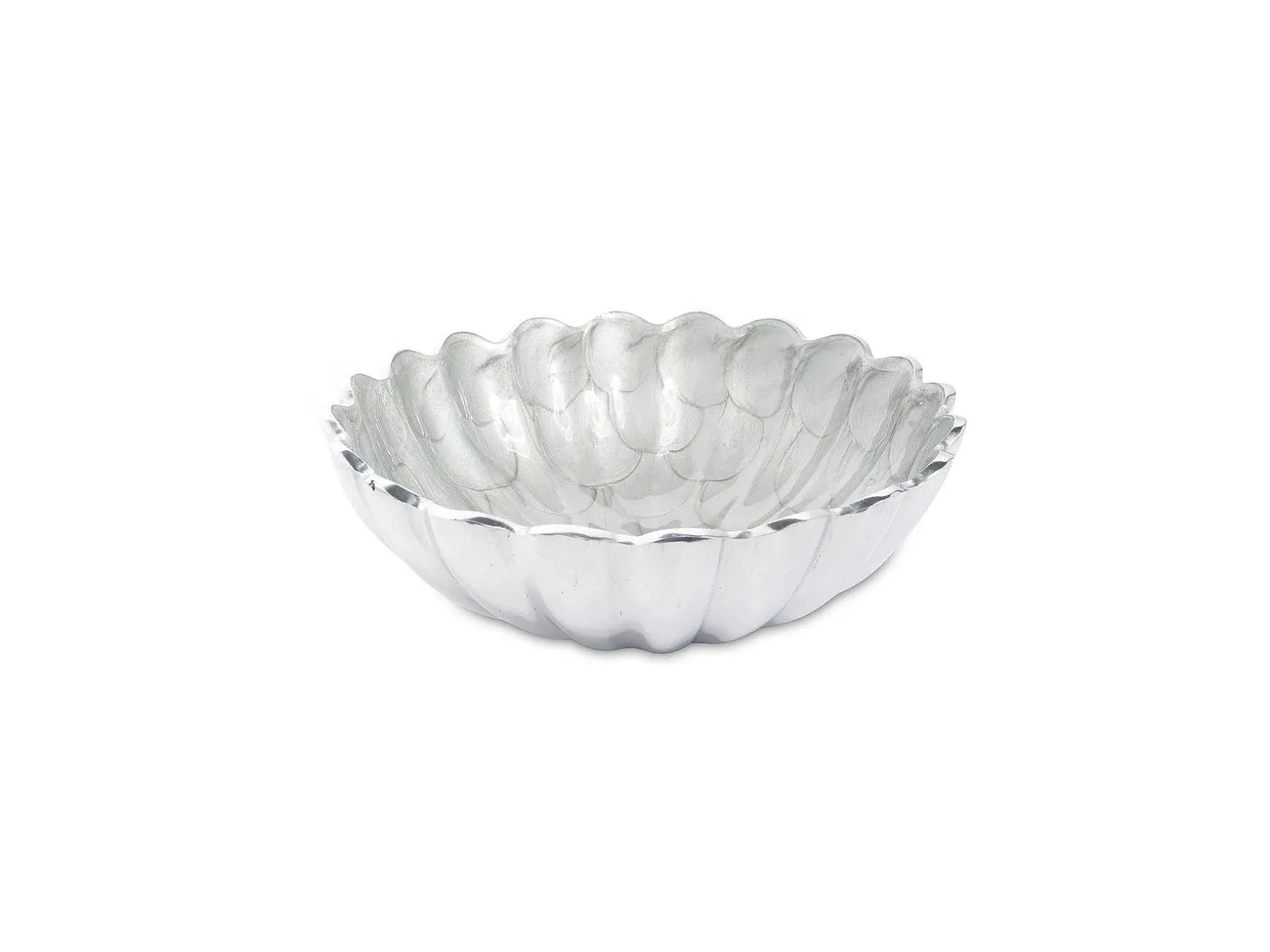 The Sweetness Of The Scalloped Petal Edge On The Peony 8.5″ Round Deep Bowl Is Absolutely Undeniable! The Luxurious Color Palettes Embodied In The Crushed Mother Of Pearl Infused Enamel With The Signature Thumbprint Swirl, Adds Luster To Every Table. Perfect For Sauces, Asparagus Dip Or Baked Brie. Pair This Bowl With The Peony 22.5″ Rectangular Tray With Handles For Breads, Cheeses And Olive Oil. This Updated Traditional Bowl Is Also The Ideal Compliment To The Classic And By The Sea Collection. Collect All Four Sizes And Nest Them For Easy Access, Easy Storage And To See The True Petals Of The Luscious Peony Flower. The Peony Collection Is Made Of Sand-Cast Aluminum, Is Food Safe And Can Go Into The Freezer And The Oven Up To 250 Degrees.