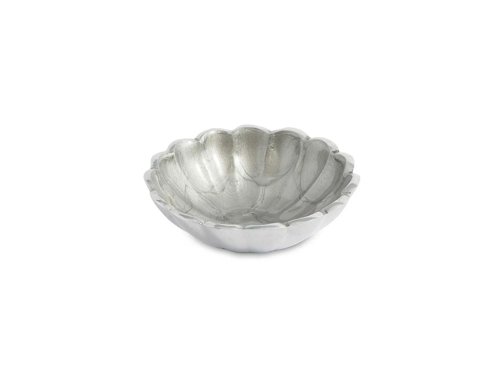 The Sweetness Of The Scalloped Petal Edge On The Peony 4O Petite Bowl Is Absolutely Undeniable! The Luxurious Color Palettes Embodied In The Crushed Mother Of Pearl With The Signature Thumbprint Swirl, Adds Luster To Every Table. Perfect For Nuts, Sauces, Divine Little Candy Treats And Even Jewelry In Your Powder Room! Pair This Bowl With The Peony 14″ Or 6″ Rectangular Tray Or With The Peony 6″ Petite Plates For A Darling Coupling.This Updated Traditional Bowl Is Also The Ideal Compliment To The Classic And By The Sea Collection.Collect All Four Sizes And Nest Them For Easy Access, Easy Storage And To See The True Petals Of The Luscious Peony Flower. The Peony Collection Is Made Of Sand-Cast Aluminum, Is Food Safe And Can Go Into The Freezer And The Oven Up To 250 Degrees.