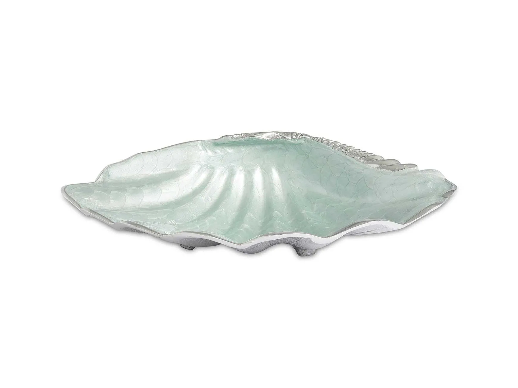 Sophisticated Coastal With A Splash Of Whimsy! You’Ll Love The Sweet Details Of The Tahitian Clam 17.5″ Bowl. Perfect For Seafood Salad, Pasta Or Loads Of Shrimp On Ice, This Piece Will Charm You And Your Guests. Crafted With The Crushed Mother Of Pearl Infused Enamel And The Signature Thumbprint Swirl, Each Piece Is Truly One-Of-A-Kind. With Soothing Colors Reminiscent Of The Shore, You’Ll Be Able To Create An Enchanting Evening By Mixing And Matching Pieces From The By The Sea Or The Peony Collection. You’Ll Leave Your Guests Clamoring For More! The By The Sea Collection Is Sand-Cast Aluminum, Food Safe And Can Go Into The Freezer And The Oven Up To 250 Degrees.